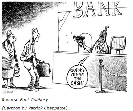 And it’s worth remembering this: In the US, for example, the bank insurance fund held by the FDIC has $25 billion. That’s the amount insuring $9 trillion worth of deposits.  So that’s 370 times more deposits than the amount in the insurance fund. And the insured banks have an additional $297 trillion in exposure to derivatives. So that’s almost 12,000 times more than the amount in the insurance fund. Very safe and sound, eh? Now you know why the authorities have just hinted that banks won’t be simply bailed out anymore; people’s deposits will be bailed in. Just remember, they’ve put you on notice now that you need to determine whether or not your bank is safe. People who spend their whole lives trying to do that can’t figure out which banks are truly safe anymore, but so what, you are now supposed to be able to do that. You can see a chart of the FDIC situation here. And you can find out a little about the safety of any US bank at the Safe and Sound section here. I am not aware of what is available publicly available for bank analysis in other countries.