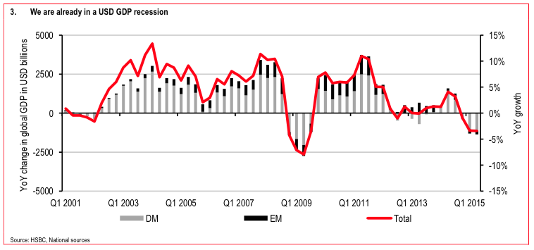 I guess the oil and real estate businesses are not exactly booming in Louisiana. Though it isn’t just Louisiana. Here is a chart of worldwide sales by bulldozer-maker Caterpillar for the last six years. It shows that their sales have been declining for 36 months in a row. All of those bars, starting in 2013, that extend below the zero line (shown in the red oval) show the percentage decline in sales. And this is during the alleged “economic recovery.” I wonder what this chart will look like next time the authorities admit to the anti-recovery: